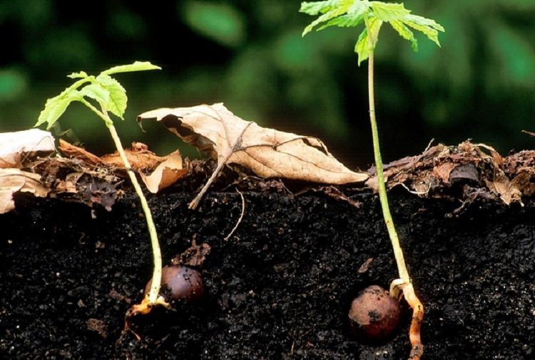 - Deretter kommer tilberedningen av en spesiell blanding. Du må blande skogjord og humus i forholdet 1: 1. Du må ha nøttene i denne blandingen i minst 4 måneder.