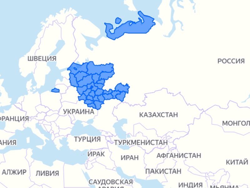 Anbefalte regioner på kartet: Nordvest, Sentral, Midt-Volga.