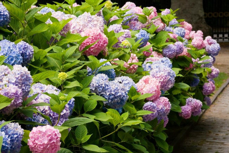 - Gjødsel. Å mate hortensiaer er viktig for å forlenge blomstringsperioden. Det er bedre å mate planten ved hjelp av mineralgjødsel, og deres sammensetning bør velges i samsvar med sortens egenskaper (for eksempel for planter med blå og blå blomster, bør kalium være rådende i gjødsel, men fosfor bør være mindre). Det er viktig å gjødsle på begynnelsen av våren, når planten vokser aktivt, deretter på begynnelsen av sommeren, når knopper dannes, og på slutten av sommeren, når det er en aktiv legging av nye knopper for fremtidig blomstring.