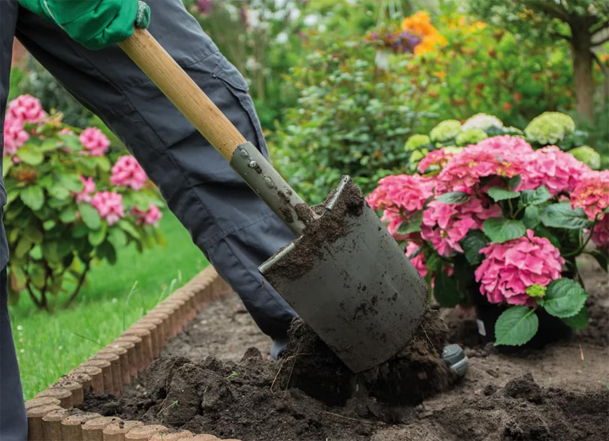 Å plante hortensiaer har noen særegenheter. Først må du forberede et hull på 50 cm bredt. Dagen før planting helles det med vann. Etter at fuktigheten har forsvunnet helt, skal 20 cm jord for hortensia helles på bunnen, som inneholder torv, nåler, jord fra under løvtrær, like deler humus og sand.