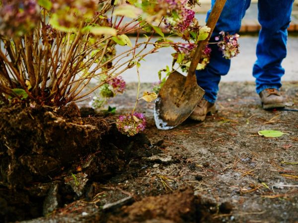 Det er bedre å plante hortensia på nytt tidlig på våren eller høsten. Det anbefales ikke å gjøre dette om sommeren under blomstring. Hortensiaen vil kaste blomster og knopper og nekte å blomstre for neste sesong.