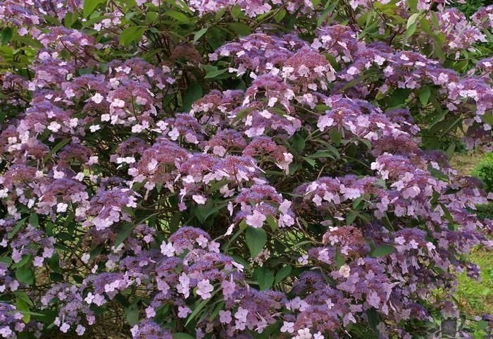 Buskens blomster er hvite, blekrosa eller lilla i fargen. De danner skjoldbruskkjertelen, som når 20 cm i diameter. Blomstringen varer mer enn 2 måneder. Dessuten begynner det i midten av juni.
