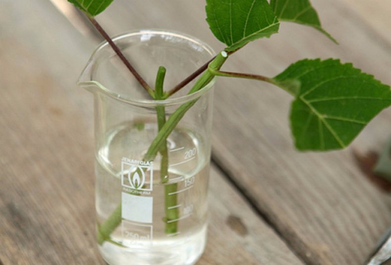 Deretter skal skjæringen behandles med et vekststimulerende middel og plasseres i en blanding av torv og sand. Dekk beholderen med folie og noen ganger åpne den.