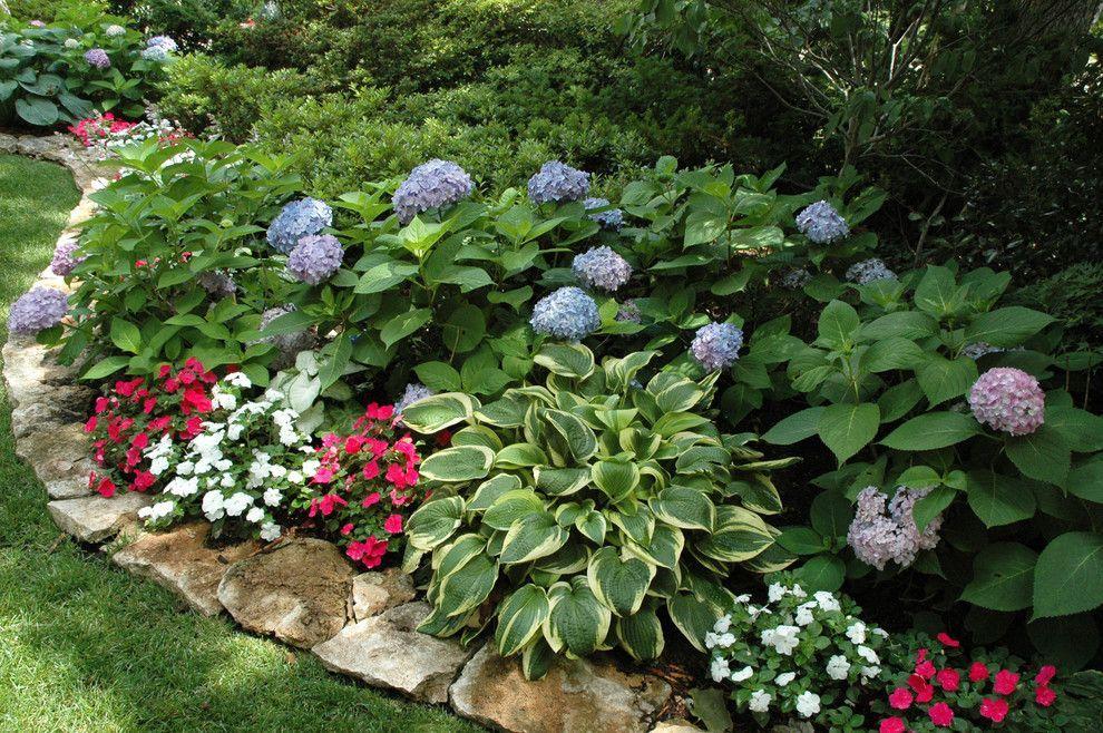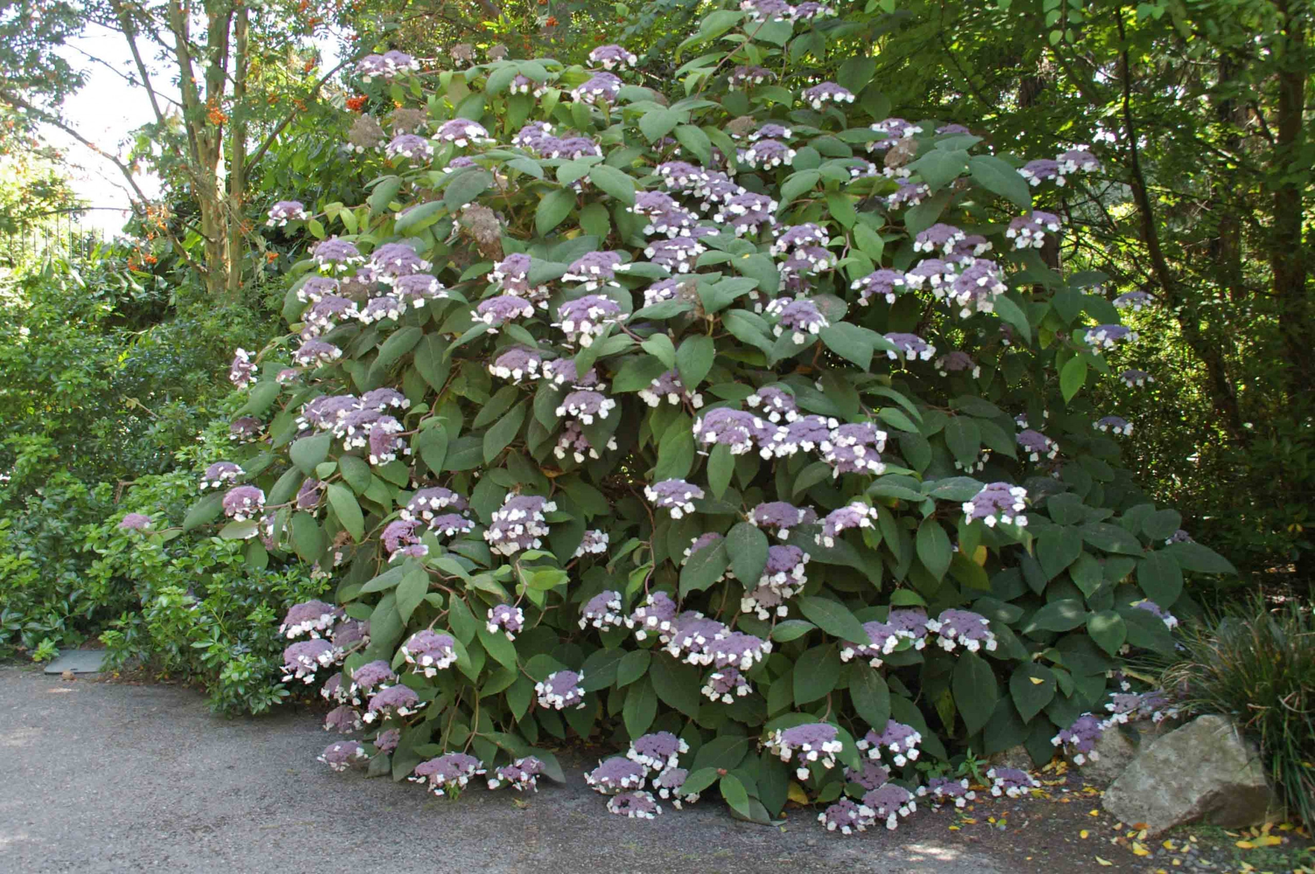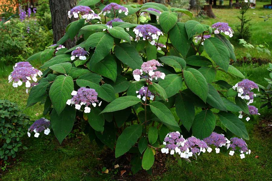 Grov hortensia finnes ofte på steder som en landskapsdekorasjon.