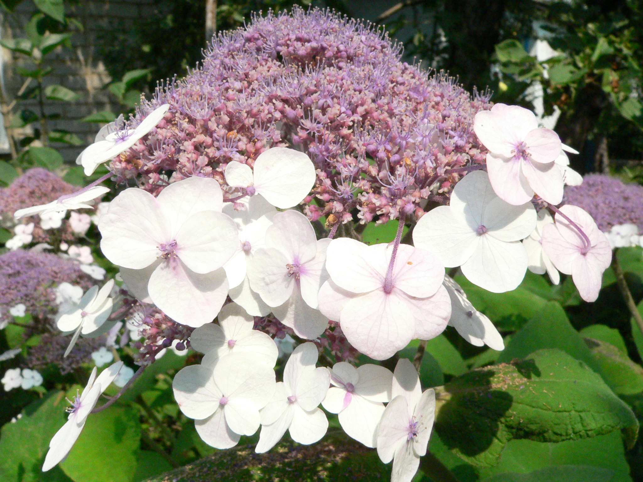 Hortensia begynner å blomstre i slutten av juli og fortsetter til midten av september. Blomstene kan være hvite, lilla eller rosa, avhengig av sorten. Knoppene er formet som en panicle. Aseksuelle store blomster ligger i kantene. I midten er knoppene små og mer intense i fargen.