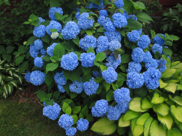 - De fleste av de kjente varianter av hortensiaer har blå blomster når de dyrkes i sur jord - med en pH på 5 eller mindre.