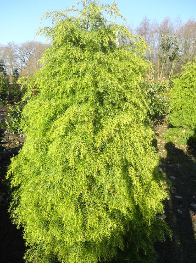 Dette dvergtreet, i ung alder, har en avrundet form. Den vokser sakte. Over tid ser det ut som en liten busk. Maksimal høyde er 2 m. Nålene er blågrønne, under kalde forhold blir de bronse.