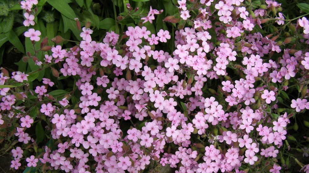 Det er mange varianter av såpeurtgrass, men de er alle enkle å få øye på på plenen fra det store, lysrosa blomsterteppet. Planten anses å være underdimensjonert og kan nå en høyde på ikke mer enn 90 cm. Blomstringen begynner i mai, de blomstrende knoppene har fem små kronblad.