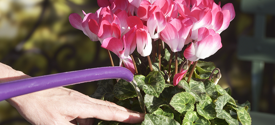 Merk! For cyklamen er det nødvendig med tilstrekkelig luftfuktighet, i tillegg til vanning, bør planten med jevne mellomrom sprayes med vann.