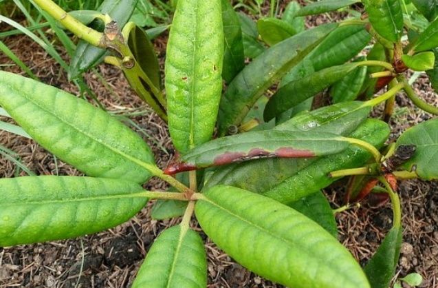 Mangel på jern og mangan, som skyldes lav jordsyre, mangel på nitrogen, fosfor, bor fører til at rododendronen vokser dårlig, lider av bladflekk og rust, blir dekket av brune og rødlige flekker og slutter å utvikle seg.