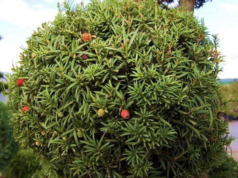 De liker også å bruke barlind som dekorasjon. Den kombinerer flere typer bartrær. Den vokser sakte. Et særegent trekk er de små sfæriske røde fruktene, som gjør at den skiller seg ut fra andre planter. Dette er ikke en enkel blomst. I tillegg er det ganske kjent på grunn av det faktum at det kan leve opp til 3000 år.