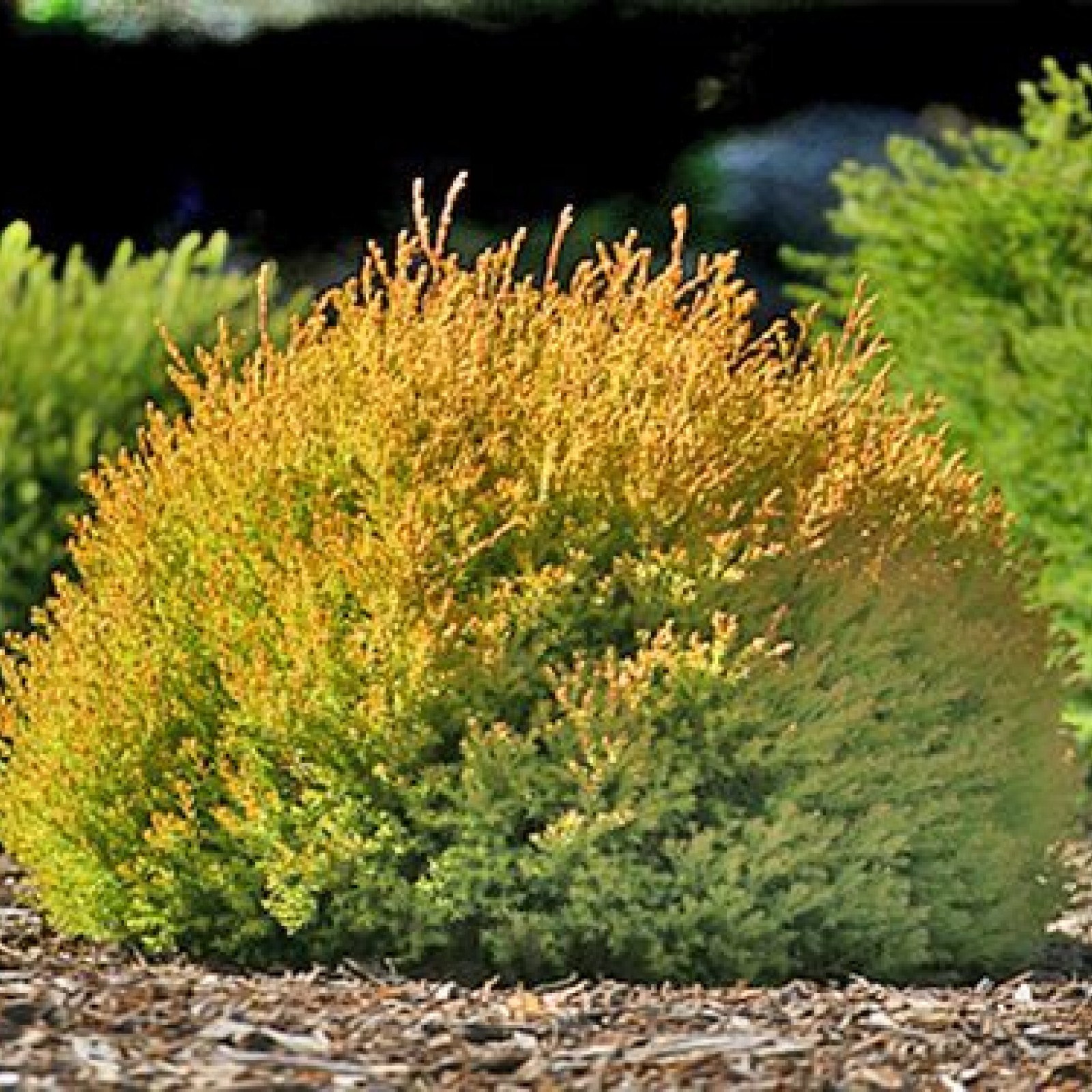 En eggformet bonsai. Maksimal høyde er opptil 2,5 m, og bredden er opptil 1,5 m. Den årlige veksten er ikke mer enn 10 cm. Om sommeren er nålene grønn-gule, og om vinteren er de bronsebrune. Elsker toppdressing, rikelig vanning, lys sol. Vinteren tåler opptil -40 ° С.