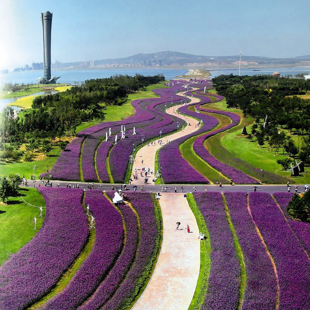 Det passer bra med dekorative bartrær, gress og andre høye stauder. Selv om planten når stor høyde, er det ikke nødvendig å binde den. Når du blomstrer, åpner det seg små lilla paraplyer på toppen, hvorfra det vises syrinblomster.