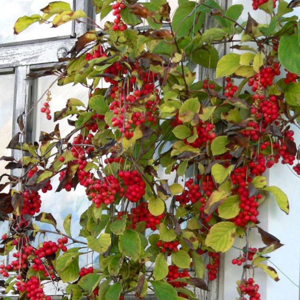 En frukt eggstokk er dannet av blomstene, klynger av røde bær modner om høsten. Bærene forblir på stilkene av vintreet, selv etter at løvet har falt av. De har en sur smak med terte notater.