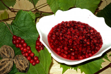 Fersk frukt er knallrød, tørkede bær er mørkerøde, noen ganger til og med svarte. Bærene smaker syrlig med en syrlig ettersmak. Under bærens tynne hud er det en saftig øm masse, som det er lett å presse juice fra.