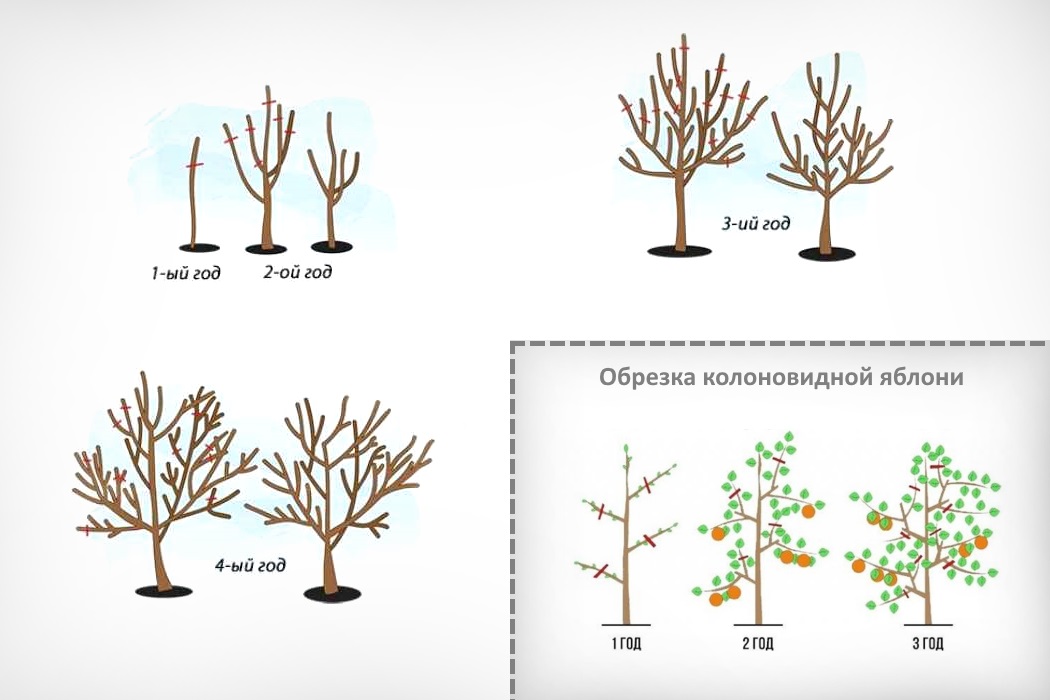 Etter overvintring er hagebrukekulturen spesielt pleietrengende. Søyle epletrær beskjæres om våren i henhold til ordningen: