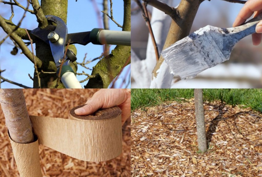 På våren og høsten trenger trær hvitkalking og behandling av mindre skader og store sår med hagelakk. Dette vil forhindre sykdom og skremme bort skadedyr.