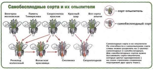 Mange varianter av plommer er selvinfertile. Dette betyr at de trenger en felles planting med pollinerende varianter. Hver sort har sin egen pollinatornabo. Dette bør tas i betraktning når du planter unge frøplanter.