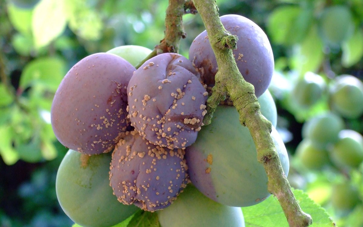 Skadedyr som spiser blomsterknopper, forhindrer at blomster og frukt setter seg. En slik parasitt kalles en blomsterbille, og den kan identifiseres når treet har mistet frukten. Plommefrukt og frø blir skadet av larven på møllen, tykkfoten og sagflisen.