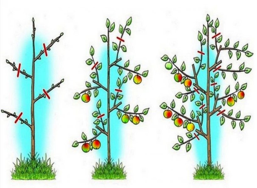 Når du danner kronen, må du være ekstremt forsiktig. Med en sterk forkortelse av grenene kan treet bruke all sin energi på å gjenopprette den avskårne kronen, mens epletreet kanskje ikke blomstrer.