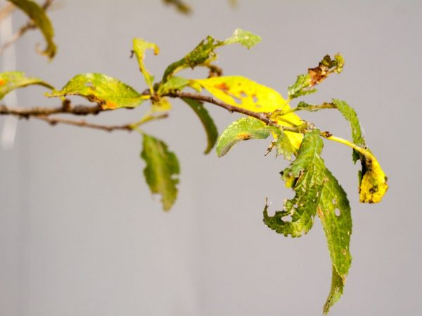 - Moniliose er en sykdom der bladene ikke bare endrer farge, men også begynner å fortne raskt og falle av. Dette strekker seg også til grener. Sykdommen manifesterer seg i august. Soppdrepende medisiner brukes til å kvitte seg med moniliose.