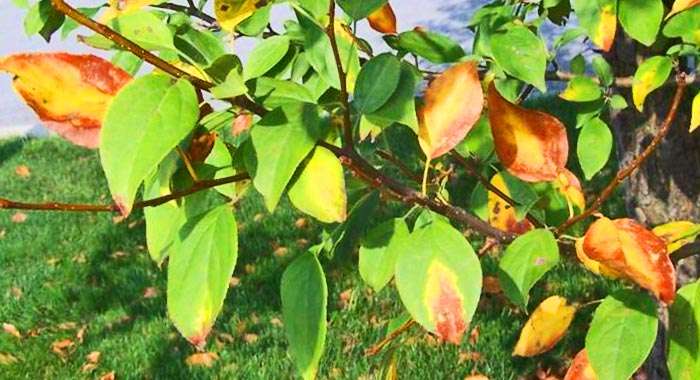 - den nedre delen av kronen begynner å skifte farge først - dette indikerer mangel på et antall næringsstoffer i jorden;
