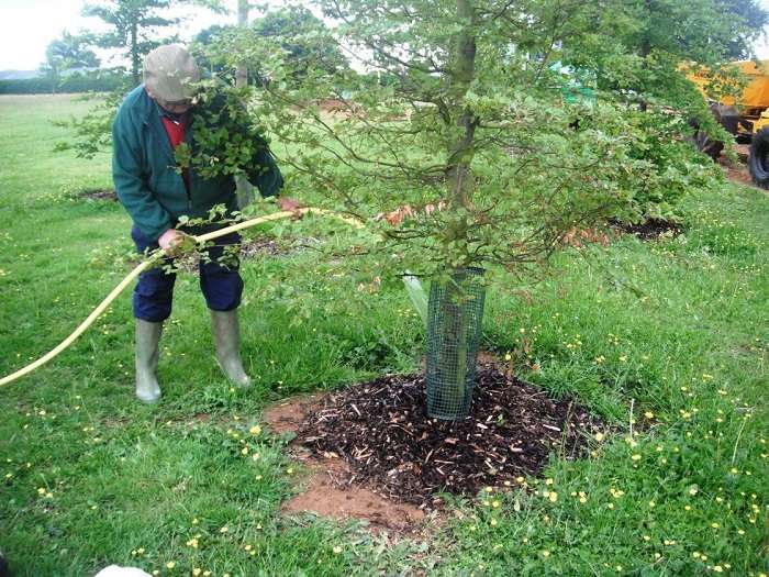 - Mangel på fuktighet eller stillestående vann i jorda - normalisering av vanning. I fravær av nedbør i lang tid blir vannet treet hver 4-6 uke. Det er nødvendig å vanne planten tidlig om morgenen eller om kvelden for å unngå forbrenning på bladverket.