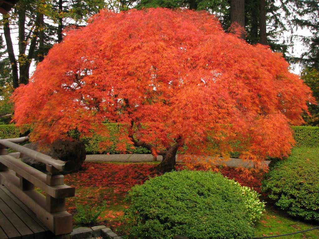 For å diversifisere den grønne fargen på kronene, kan du velge spesielle tresorter der bladene er røde. De mest populære artene er rød lønn og fjellaske. Det første alternativet krever spesiell oppmerksomhet, stell, og frøplanten er dyr. Rowan er et enklere og upretensiøst alternativ, men ikke så spektakulært. Trær med røde blader skiller seg ut fra den vanlige landskapsdesignen og er ikke så lunefull å ta vare på.