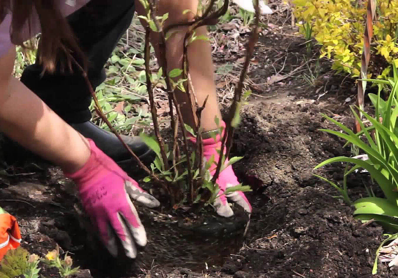 For en hortensia graves et plantehull med en diameter på ca 60 cm. Dypet kan være ca 30 cm, men mye avhenger av volumet på rotsystemet. Røttene i plantegropen skal være fri. Gjødsel påføres den tomme gropen. De kan være både mineraliske og organiske. Jorden er drysset med torv og sand.