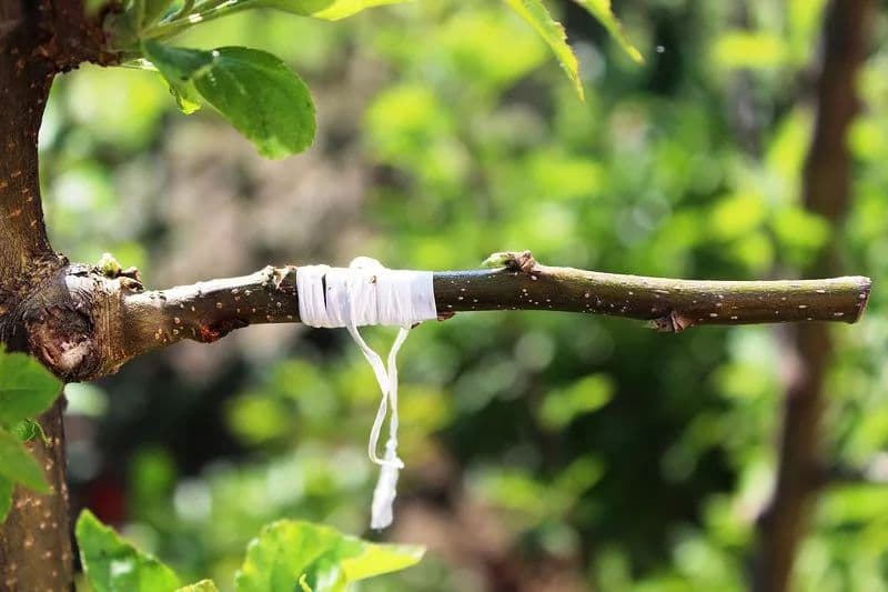 For å fikse transplantatene er det nødvendig med spesielle bandasjer med elastiske strukturer i forskjellige størrelser. En raffia-vaskeklut og biter av plastbånd vil også fungere. Skjæringen må behandles med kitt i tre.