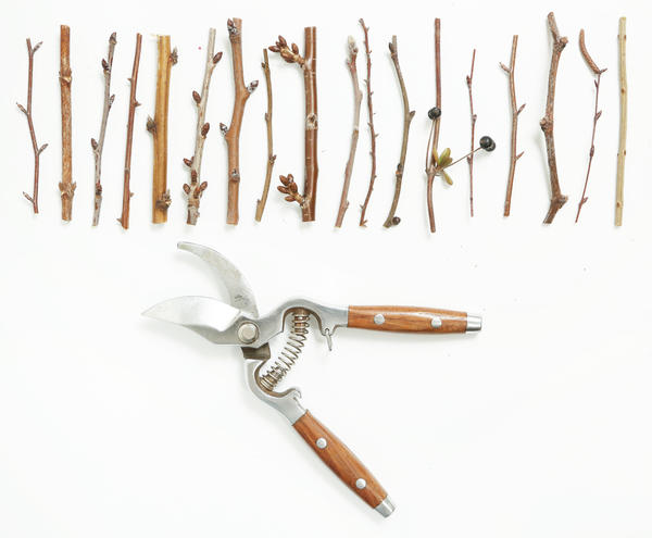 Du bør bruke hagesaks for å forberede dine grunnstammer og stiklinger. Et spesielt knuteverktøy brukes til å trimme tykke grener. For slipeverktøy, bruk et slipehjul med en finkornet kant.