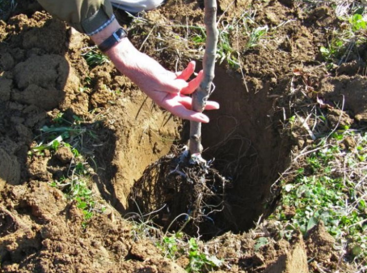 Trær skal ikke plantes nær hverandre, det skal være minst 2 meter mellom dem. Fordypningen for å plante frøplanter forberedes på forhånd. Den skal være 0,5 meter dyp og 0,7 meter bred. Bunnen av gropen er dekket med en blanding av jord og humus.