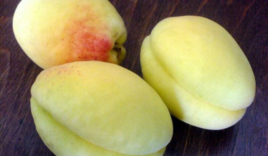 Et mellomstort tre begynner å bære frukt 3 år etter at frøplanten er plantet. Tidlig modning. Kulturen vokser sakte. Bladplater med en mørkegrønn palett er store. Det avrundede bladverket smalner mot spissen. Blomstringsperioden begynner til bladene vises på treet. Blomstene er stort sett ensomme, og stilken er kort. Diameteren på kronbladene i hvitrosa nyanser når 30 mm. Den søte frukten brukes oftest til å lage konserver og syltetøy.