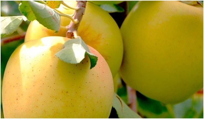 For første gang ble lavvoksende epletrær av Golden Delicious-sorten avlet i USA. Oversatt til russisk høres navnet ut som "gylden søthet". Høyt utbytte, aroma, immunitet mot en rekke sykdommer tjente som den raske spredningen av trær i SNG-landene og Europa. Golden Delicious er et deilig utvalg av epler preget av en avrundet form, middels størrelse, som veier ca 150-200 g.