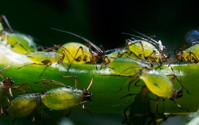 Maur kan også bidra til en gunstig overvintring av bladlus. De tar egg og grunnleggende hunner til reirene deres om vinteren, og om våren bærer de dem ut og finner de beste fôringsforholdene for dem.