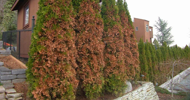 For å unngå slike problemer i fremtiden, bør thujaen beskyttes mot solsiden med et materiale som ikke slipper solstrålene gjennom, men som gir god luftsirkulasjon. For å gjøre dette kan du for eksempel bruke grangrener.