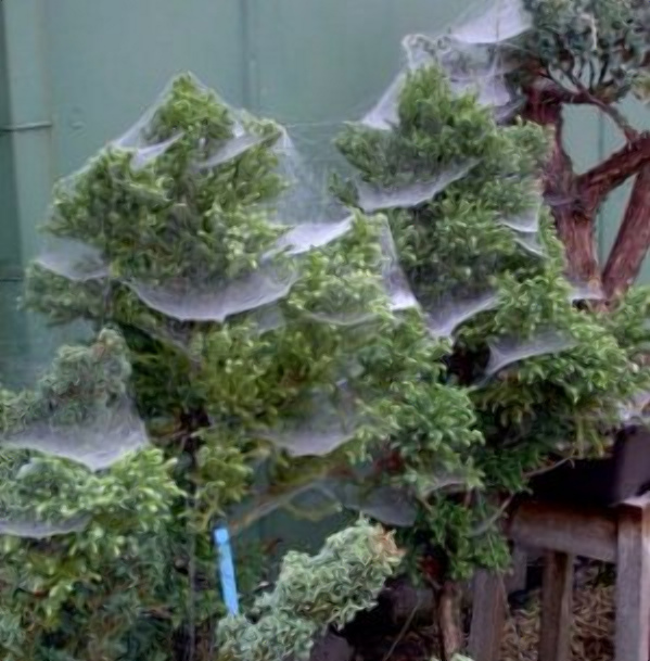 Edderkoppmidd er liten, så det er vanskelig å legge merke til det. For det meste finnes grønne parasitter, noen ganger kan det sees oransje eller røde individer. Hovedtegnet på at denne parasitten har angrepet thuyu er spindelvevet.