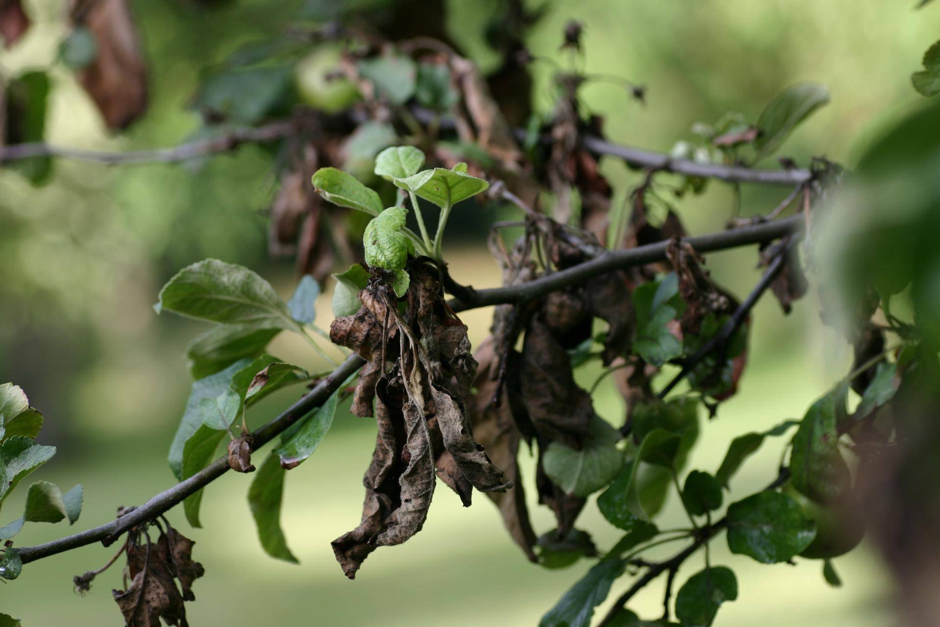 Brannfargen er høyest på forsommeren (fra slutten av juni til juli). Flekker spres raskt gjennom løvet. Et tre med alvorlige lesjoner ser brent ut. Derfor kalles sykdommen en forbrenning. Det behandles med et antibiotikum.