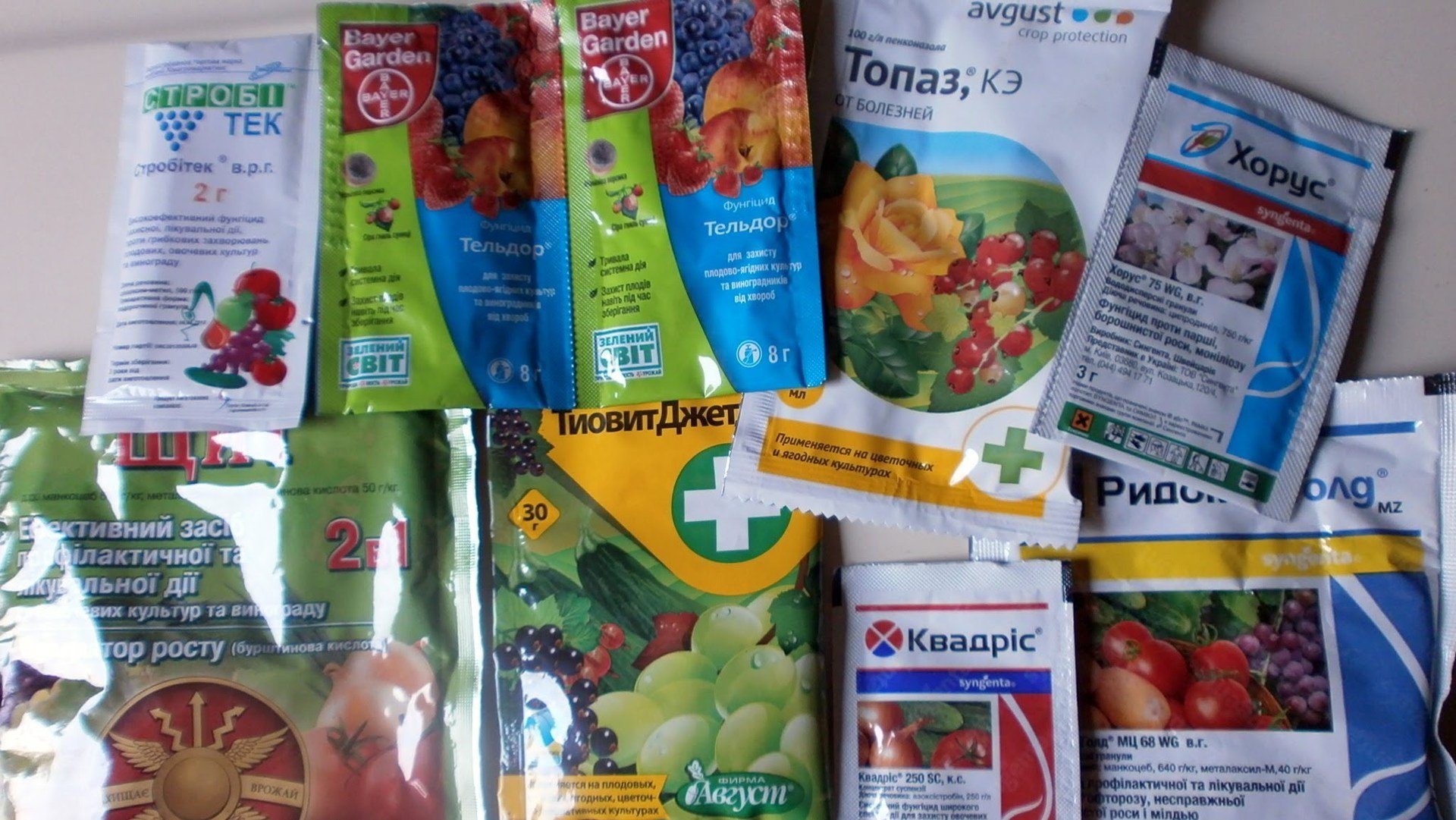 - Bland Azophos - 30 g, Skor - 2 ml, Bayleton - 6 g, kobberoksyklorid og vann - 10 liter.