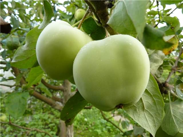 Fruktene er grønn-gule i fargen. De har ingen rød rødme. På scenen med avtakbar modenhet har frukten et hvitt belegg. Skallen er ganske duftende og glatt. I en tilstand av full modenhet får huden en blekhvit farge.