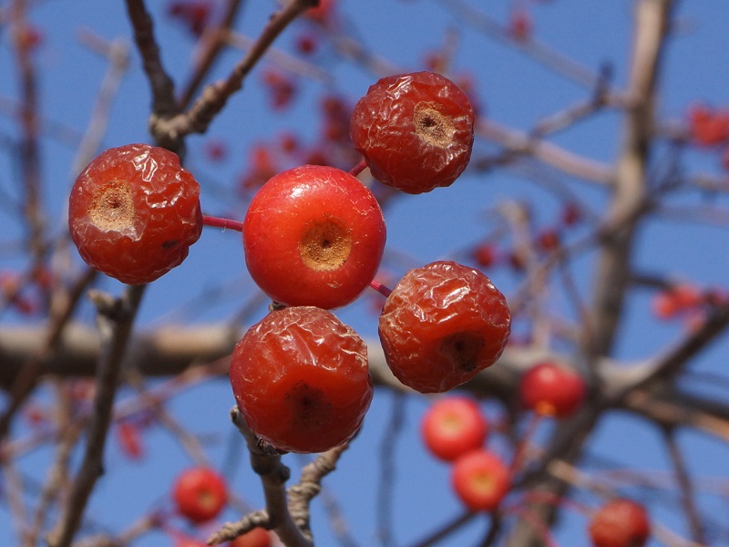 Fruktens tekniske modenhet begynner i september.Små røde epler pryder kronen til desember. Diameteren deres overstiger ikke 1 cm. Innvendig deles frukten med ventiler i 5 kamre med frø.