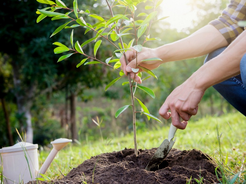 - Dekk en tredjedel av hullet med jordunderlag.