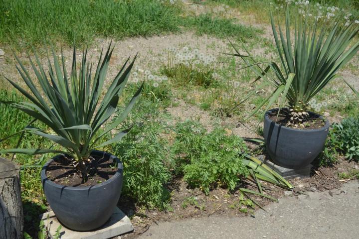 - Anlegg. For planting er en yucca dyrket i en blomsterpotte eller en stilk med røtter egnet. Alle velger hvilken sort de skal plante, men den skal være designet for å plante i åpen jord;