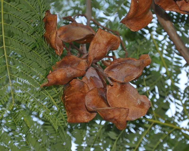 Fruktene som dukker opp etter blomstring er en boks med mange frø. Bladene av mange varianter utad har sterk likhet med løvverket til en bregne eller mimosa, som et annet navn er vanlig fra - mimosa jacaranda.