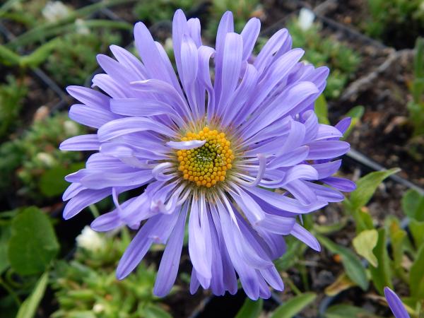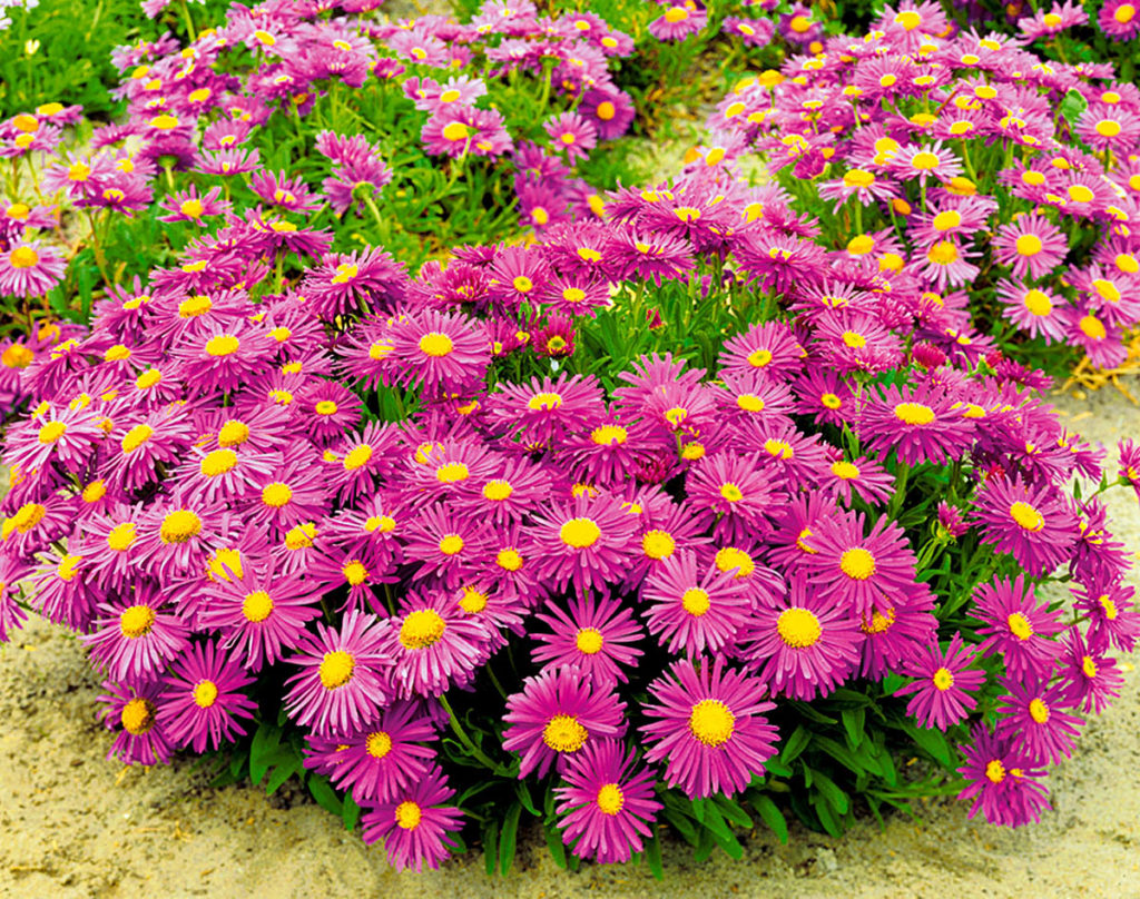 På salg kan du enkelt finne alpine asterbusker i forskjellige farger, presentert i containere.