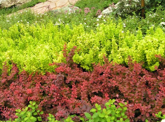 På grunn av mangfoldet av løvfarger kan du få alle slags interessante kombinasjoner, som gjør nettstedet til et ekte drivhus. Selv en vanlig amatør kan takle denne oppgaven. Barberry Bagatelle er veldig populær blant landskapsdesignere på grunn av sesongens endring i utseendet. Den brukes til å designe:
