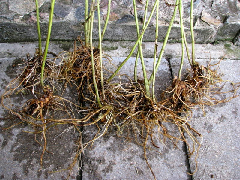Helt på begynnelsen av høsten må du fjerne planten fra bakken. De mest voluminøse røttene er egnet for deling. De må deles i biter på 6-7 cm og plantes med den tynne enden ned. Deretter er stiklingene dekket med et lag med sand (ca. 5 cm) og litt fuktet.Boksen er gjemt i et rom uten tilgang til sollys. Den anbefalte temperaturen er rundt 12-15 ° C. For å stimulere skuddvekst økes temperaturen til 20 ° C etter 3 uker.