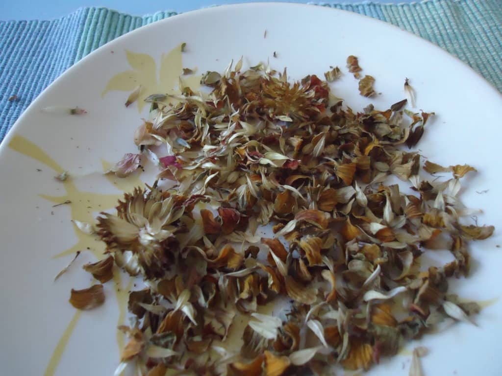 - Først bestemmes de mest egnede og tørkede blomstene. Det faktum at de er klare til å samle frø, fremgår av hodets mørke farge og stammen av en brun fargetone. En stiv børste skal ligne midten av en blomst.