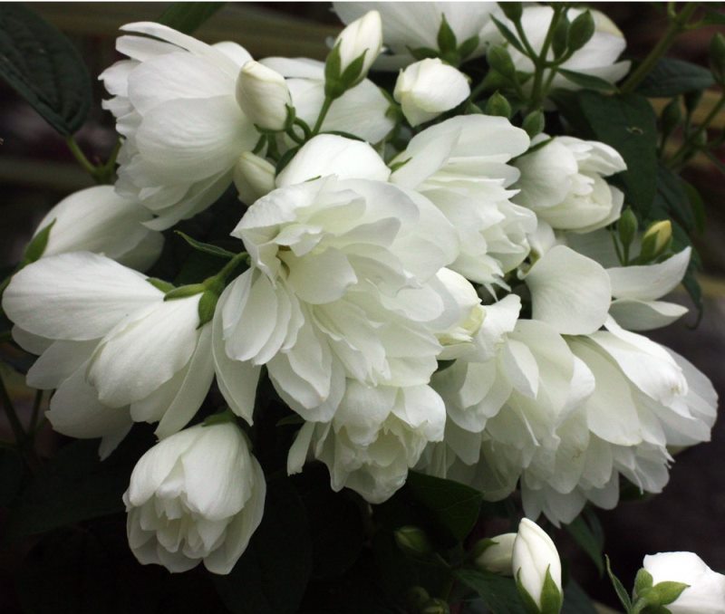 Blomstring skjer i form av doble hvite blomster, som utstråler en delikat aroma, veldig lik duften av jasmin. Knopper 2-3 cm i diameter vises på fjorårets skudd. Blomstrer til midten av juni, med start i mai.