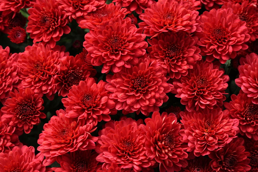 Chrysanthemum blomster - sommer, rød, dobbel